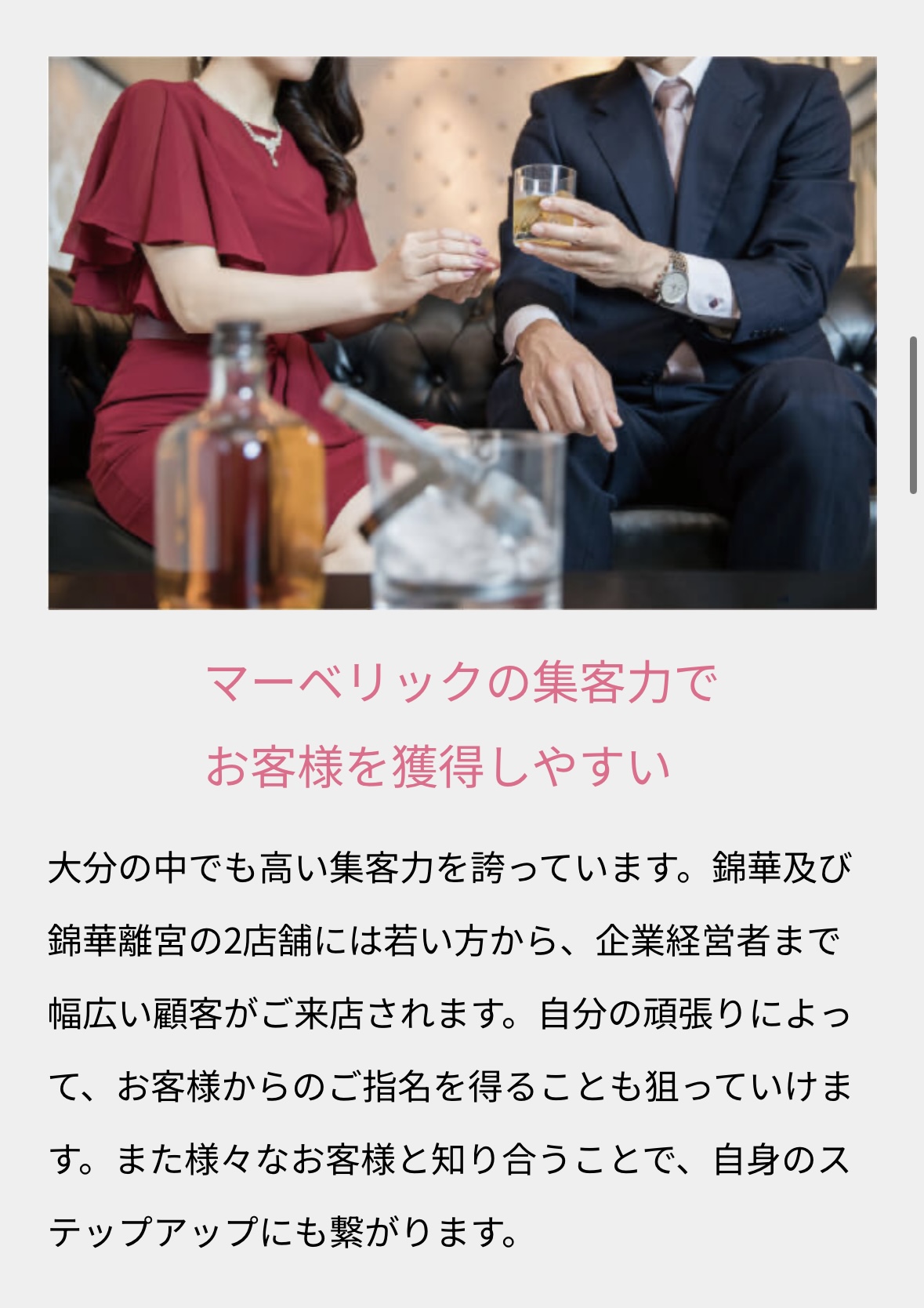 内面的にもステップアップできる環境です 女の子同士の仲も良く、派閥はなし!