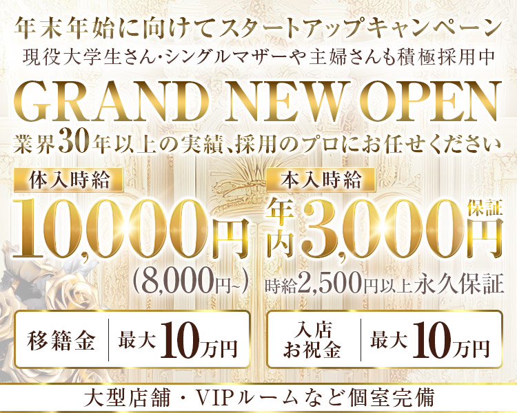 本入店時給:時給年内3,000円保証・2,500円以上永久保証◆移籍金最大10万・入店祝い金最大10万 -