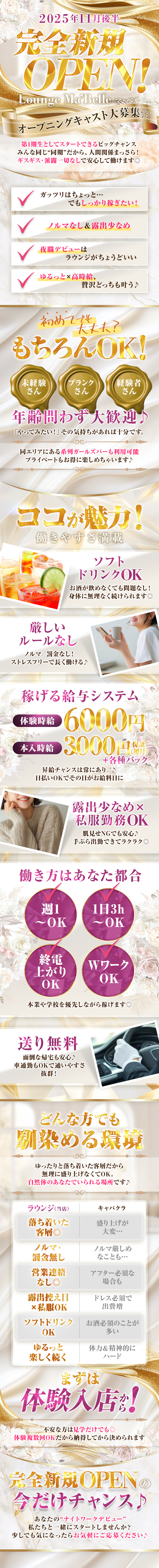 - ソフトドリンクで勤務OK♡お酒に弱い子も無理せず働けるのがうれしい◎