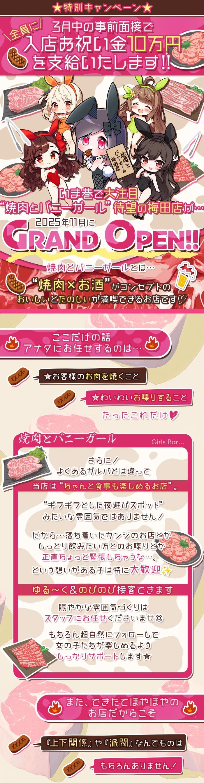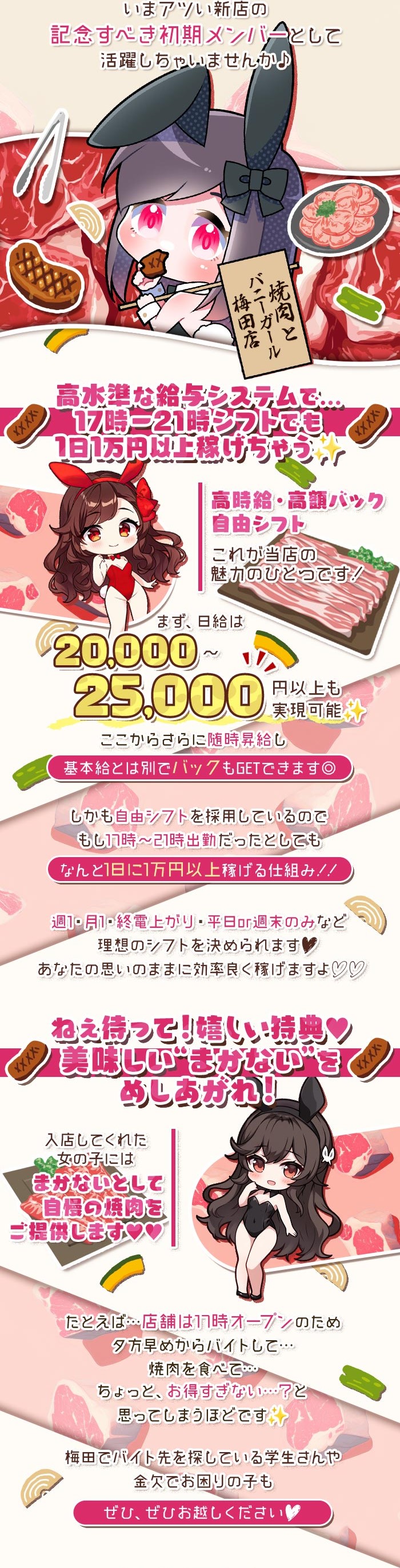 - 衣装はお店が用意×私服への匂い移りも心配なし♡まかないで人気の焼肉も楽しめる