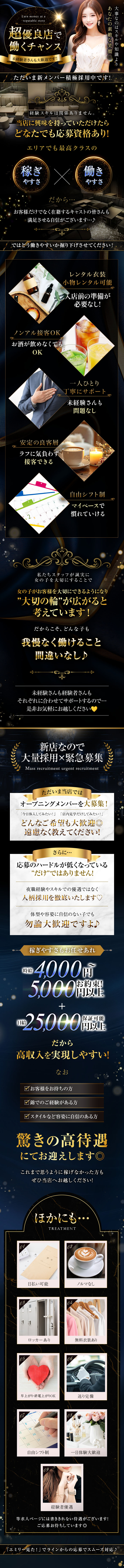 - 夜職や接客が初めてでも安心♡お仕事は丁寧に教えてもらえるから未経験スタートにもオススメ♪