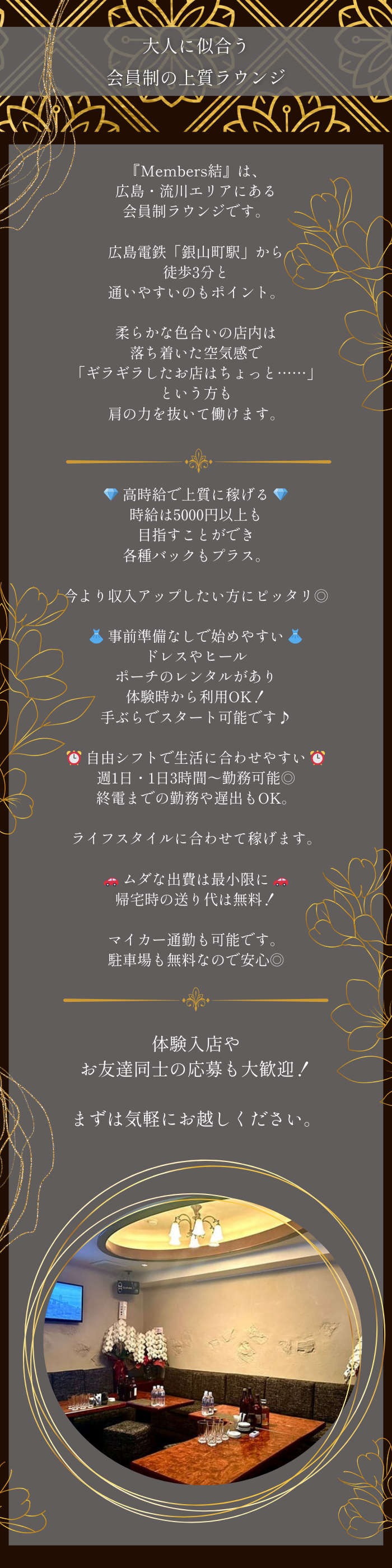 広島・流川エリアにある会員制ラウンジです。