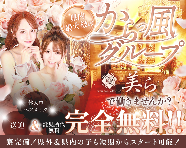 『CLUB CHU-LA 美ら 松本』は松本駅から徒歩5分のキャバクラです。オシャレな空間が印象的なお店なんだとか。学生さんやフリーターさん、Wワーク希望の方など幅広い層の女性が活躍しているみたいです。SNS運用のサポートや、オシャレな衣装のレンタル、ヘアメイクの用意などサポート体制もバッチリで安心とのこと。指名料やドリンクバックも好条件で、安定して稼ぎやすいそうです。働き方は週1日~、3時間からOK。ノルマなしで自由なスタイルで働けるから、未経験の方も無理なく始められるでしょう。気になる方は詳細を聞いてみてくださいね♪