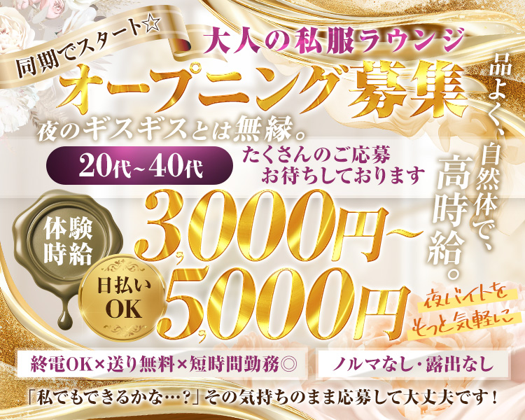 - 給与 体入時給 5,000円~ 入店時給 3,000円~