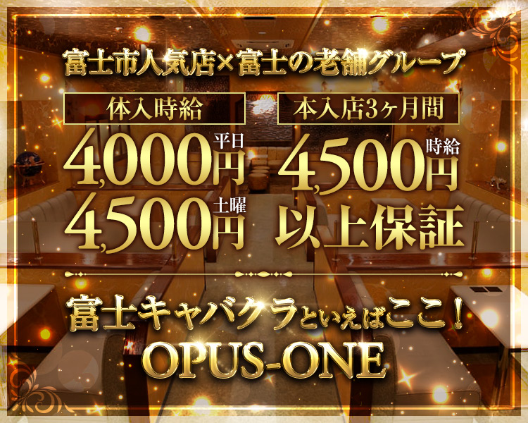 『NEW CLUB OPUS-ONE』は富士駅から徒歩3分のキャバクラなんだそう。楽しみながら収入を得られるのが特徴のようです。気になる待遇面は、体験入店の時給は4,000円以上+各種バック・本入店後の時給は2,500円以上+各種バックが付いてくる様子。終電後は自宅まで送り届けてくるんだとか。エリアも三島、御殿場、静岡、清水などの広範囲とのこと。アクセス面で諦めていた方もぜひ、『NEW CLUB OPUS-ONE』で体験入店してみませんか。